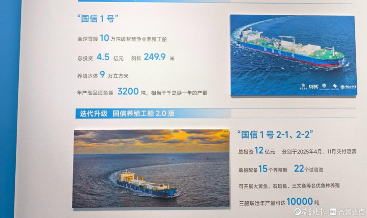 今年11月15日,由青岛国信集团投资建设的15万吨级智慧渔业大型养殖工船“国信1号2-2”正式交付运营。从全球首艘10万吨养殖工船“国信1号”启航破局,到2.0版15万吨级养殖工船“国信1号2-1”迭代创新,再到“国信1号2-2”交付入列,三船连运年产量可达1万吨。“三船联动”标志着中国深远海养殖工船迈入智能化、标准化、产业化运营新阶段。